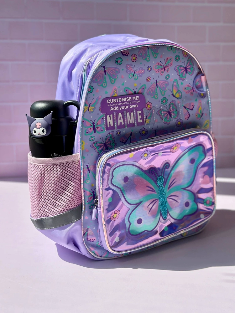 تصور کنید دخترتان با پروانه بالهای رنگینکمانی که زیر نور میدرخشد و ستاره میپاشد به مدرسه برود – جلد هولوگرام سهبعدی + چاپ گلهای برجسته! از برند وست (West)، کوله پشتی دخترانه سایز متوسط (40×30×15 سانتیمتر):