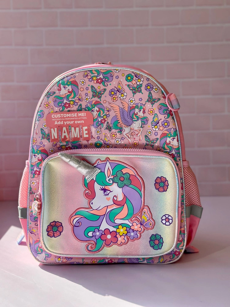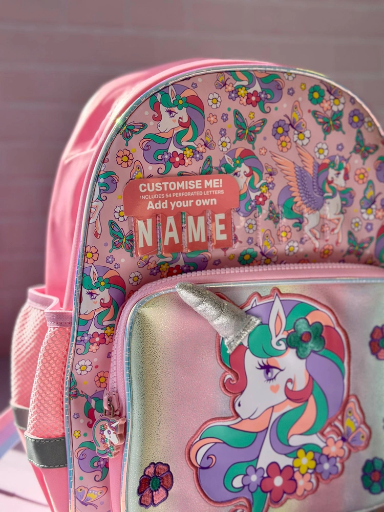 تصور کنید دخترتان با یونی‌کورن چشمک‌زن که زیر نور برق می‌زند و گل به مو داره به مدرسه برود – جلد هولوگرام سه‌بعدی + چاپ گل‌های برجسته! از برند وست (West)، کوله پشتی دخترانه سایز متوسط (40×30×15 سانتی‌متر):