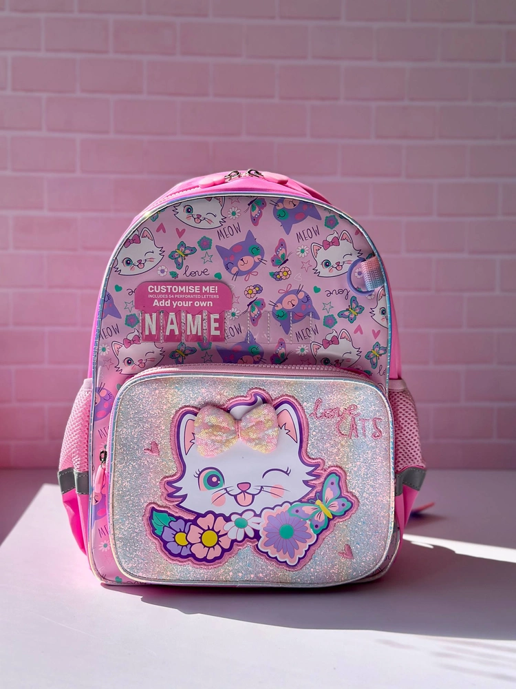 کوله پشتی وست گربه 2 کد U2021-3: کیف مدرسه پرنسسی با طرح گربه چشمکزن هولوگرافیک برای دخترهای شیطون و باهوش!